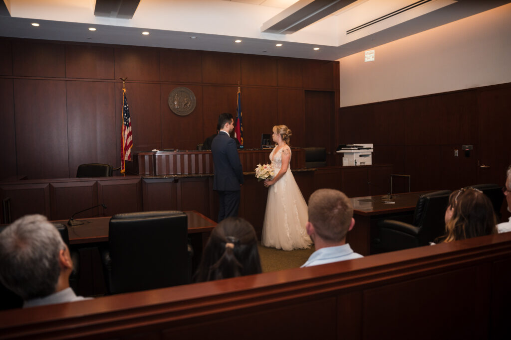 First, let’s talk about the day of logistics. There’s something deeply personal about exchanging vows in a courthouse, especially at the Wake County Justice Center in downtown Raleigh. This modern venue hosts civil wedding ceremonies in a calm and straightforward setting, making it ideal for couples who want to keep their day intentional and focused on each other.